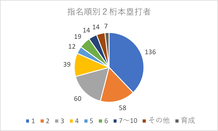 また、同じ選手は重複して数えています。2桁本塁打を何度も打てる選手を獲得できる可能性がある指名順位となります。7~10位と育成はひとまとめ。その他は自由・希望枠選手です。 このグラフ完成させるまでにひたすらデータ打ち込んで5時間以上かかりました・・・